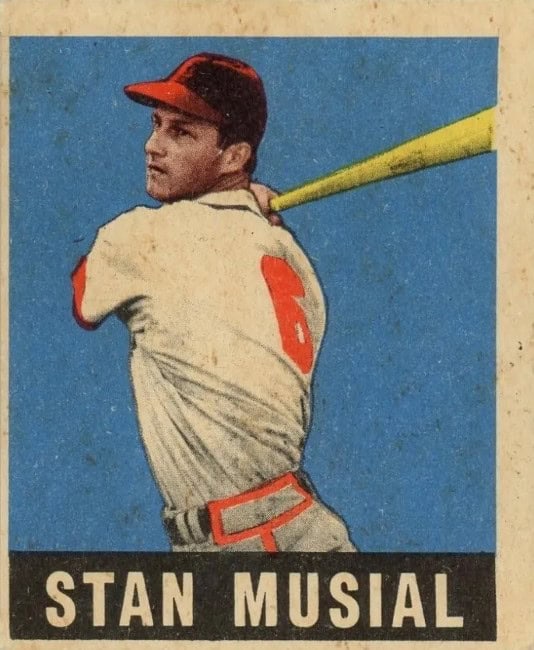 Best St. Louis Cardinals baseball card: 1948 Leaf Stan Musial #4 (RC)