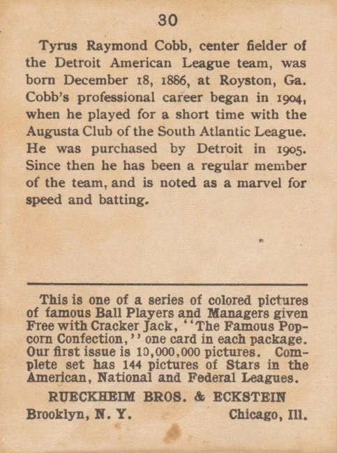 1914 Cracker Jack Ty Cobb #30 (back)