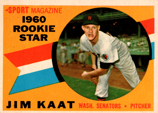 The most iconic card for Kaat is his 1960 Topps #136 rookie card. While it features him in a Washington Senators uniform, it represents the beginning of his journey with the organization that became the Twins one year later. In a PSA 8 (Near Mint-Mint) condition, this card typically commands a value of approximately $450. Higher grades are exceedingly rare and can fetch significantly more from specialists seeking to complete high-grade vintage sets from the early 1960s.