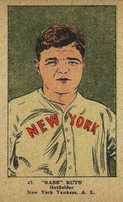 Fleer’s connection to baseball cards began in earnest during the 1920s. The first set, catalogued as W515, is part of a larger set featuring historical figures, politicians and contemporary stars, including baseball players. These cards were included as inserts with Fleer’s gum products. Instead of being a traditional baseball card set, E241 was more of a multi-topic promotional series, with artwork on the front and ads for Fleer gum on the back. While the checklist lists 120 different cards, fewer were likely printed or distributed, making the set especially hard to complete today.