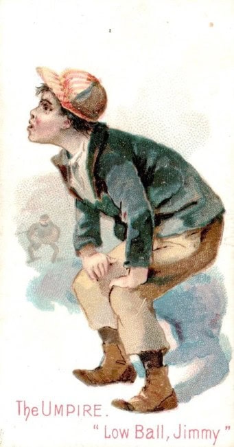 The earliest decades of baseball cards were almost exclusively devoted to players. Tobacco cards of the late 1800s and early 1900s focused on stars and common players alike and occasionally gave space to umpires too. Many of the earliest picture cards showed scenes, rather than individuals, as fans were still learning about the game and how it worked. This led to illustrated cards like the N86 Duke’s card “A Bad Decision by the Umpire,” which shows the umpire being chased from the field.